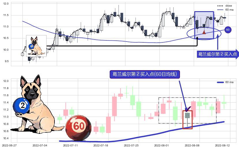 ⚀ 2022-08-04-日显现 葛兰威尔均线 60日均线 第②买入点 上升趋势的中继信号,后市看涨,买进信号