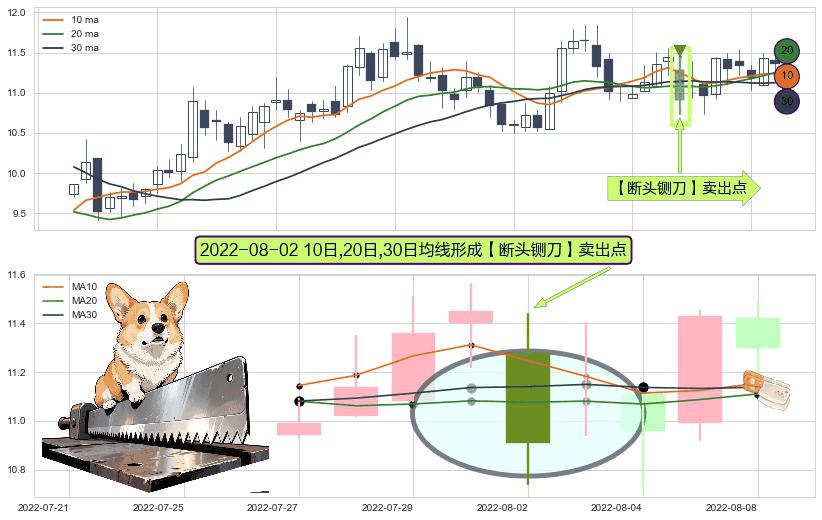 ⚀ 2022-08-02日显现 10日-20日-30日均线 【断头铡刀】卖出点 看空信号,后市看跌,卖出