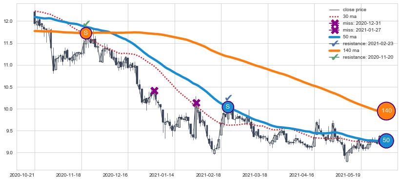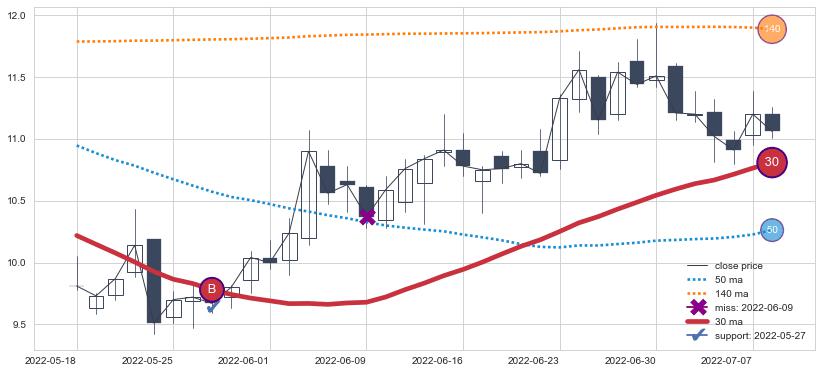 ⚄ 价格在均线获取支撑后再次向上反弹了【较短】距离, 第②买入点 支撑效果【仍需验证】