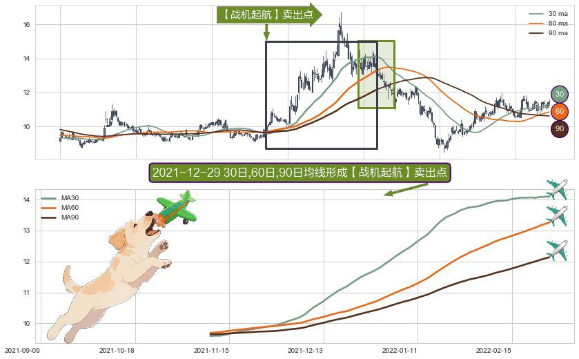 ⚀ 2021-11-09日-2022-02-25日显现 30日-60日-90日均线 【战机起航】卖出点 看空信号,后市看跌,卖出
