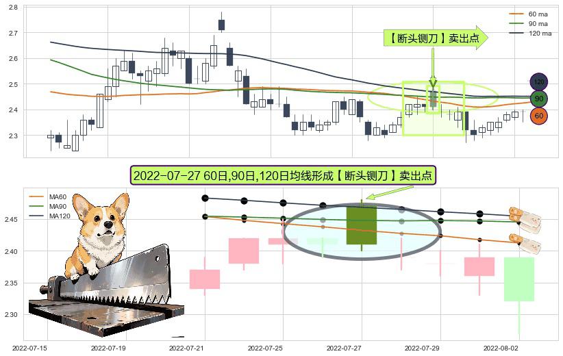 ⚀ 2022-07-27日显现 60日-90日-120日均线 【断头铡刀】卖出点 看空信号,后市看跌,卖出