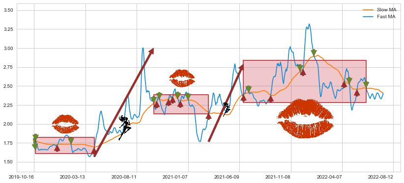 2021-06-22至2022-06-28 慢线与快线多次接触,存在上下穿越,有缠绕