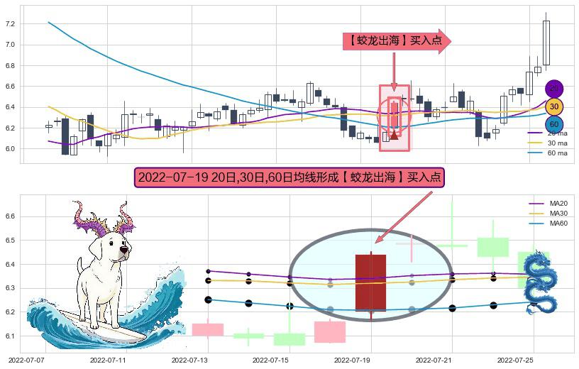 ⚀ 2022-07-19日显现 20日-30日-60日均线 【蛟龙出海】买入点 看多信号,后市看涨,买入
