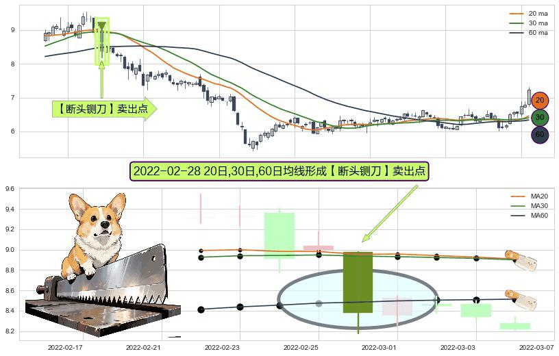 ⚀ 2022-02-28日显现 20日-30日-60日均线 【断头铡刀】卖出点 看空信号,后市看跌,卖出