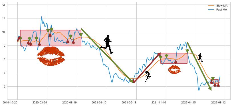 2022-03-03至2022-07-04 慢线与快线呈空头排列, 慢线与快线接触少,无缠绕