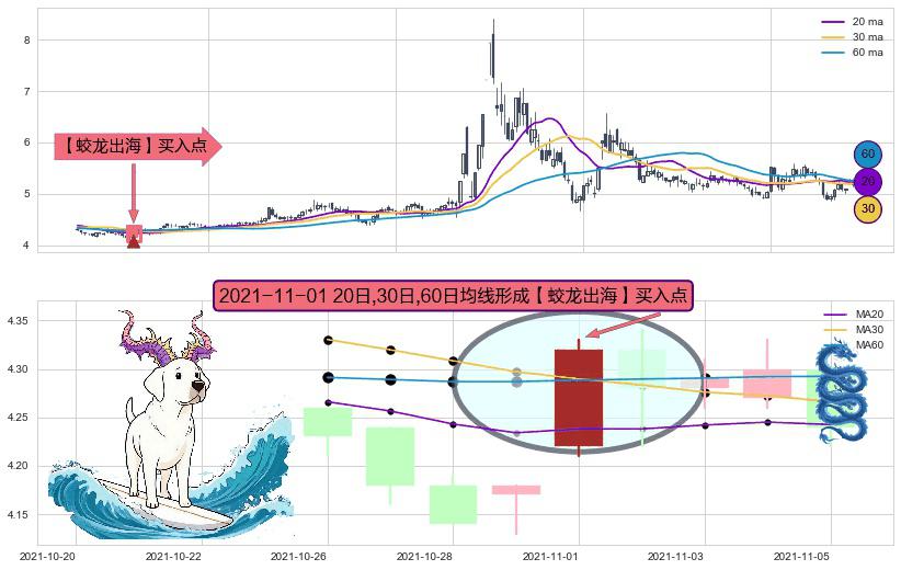 ⚀ 2021-11-01日显现 20日-30日-60日均线 【蛟龙出海】买入点 看多信号,后市看涨,买入