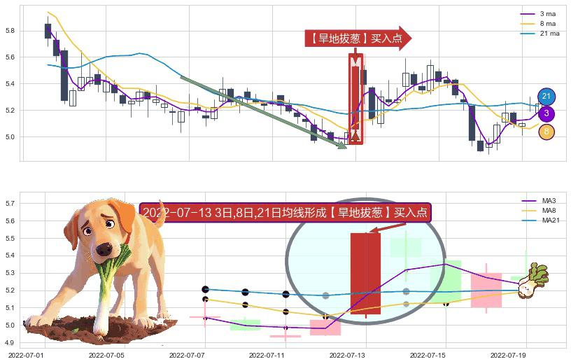 ⚀ 2022-07-13日显现 3日-8日-21日均线 【旱地拔葱】买入点 看多信号,后市看涨,买入