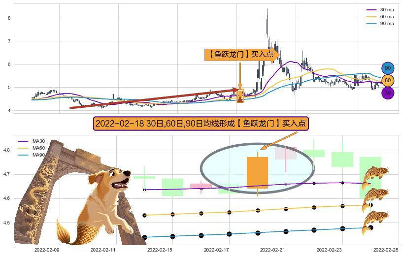 ⚀ 2022-02-18日显现 30日-60日-90日均线 【鱼跃龙门】买入点 看多信号,后市看涨,买入