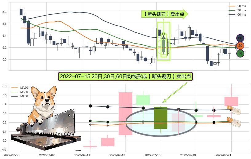 ⚀ 2022-07-15日显现 20日-30日-60日均线 【断头铡刀】卖出点 看空信号,后市看跌,卖出