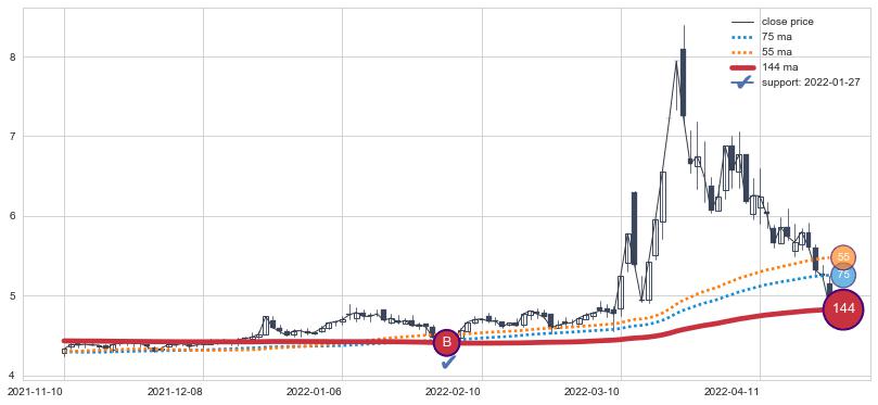 ⚂ 2022-08-03-日均线向下破位,2022-08-04-日重新上穿突破均线,均线支撑再次生效