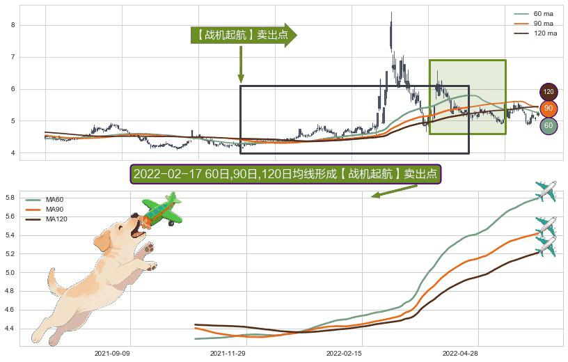 ⚀ 2021-10-28日-2022-06-09日显现 60日-90日-120日均线 【战机起航】卖出点 看空信号,后市看跌,卖出