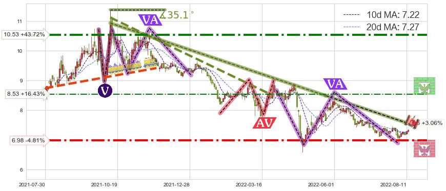 ♘ 阻力价格位8.53,可信任强度37.30%,距离最后交易2022-08-12形成的收盘价格7.33相差 +16.43%