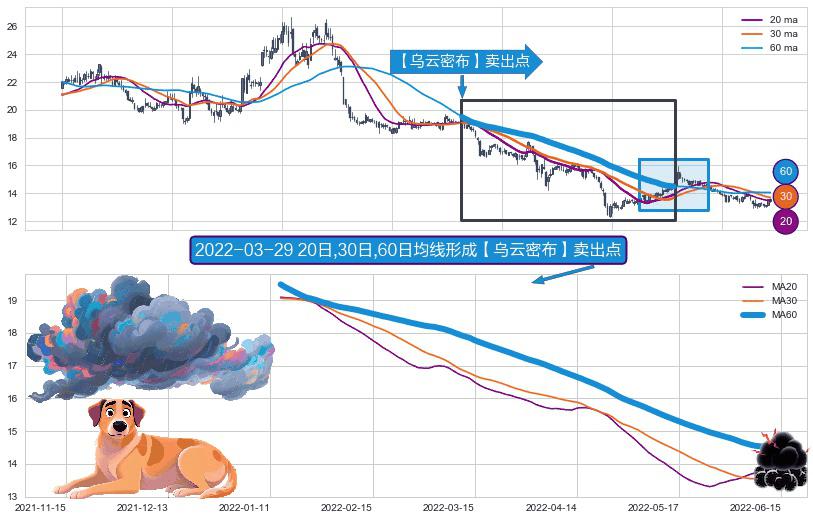 形态多维评估: ⚀ 2022-01-13日-2022-06-13日显现 20日-30日-60日均线 【乌云密布】卖出点 看空信号,后市看跌,卖出