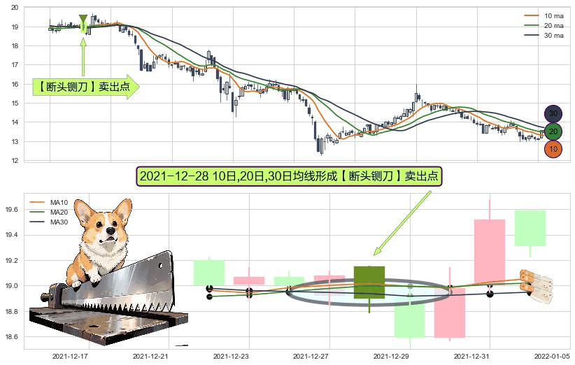 形态多维评估: ⚀ 2021-12-28日显现 10日-20日-30日均线 【断头铡刀】卖出点 看空信号,后市看跌,卖出