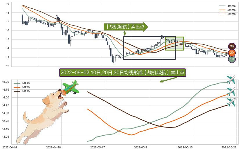 形态多维评估: ⚀ 2022-05-11日-2022-06-27日显现 10日-20日-30日均线 【战机起航】卖出点 看空信号,后市看跌,卖出