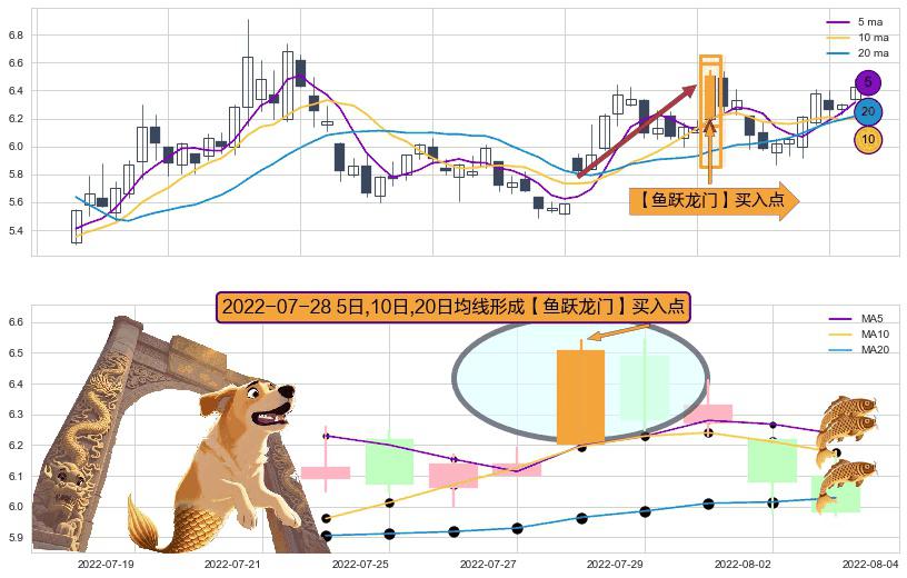 ⚀ 2022-07-28日显现 5日-10日-20日均线 【鱼跃龙门】买入点 看多信号,后市看涨,买入