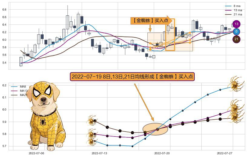 ⚀ 2022-07-19日显现 8日-13日-21日均线 【金蜘蛛】买入点 看多信号,后市看涨,买入