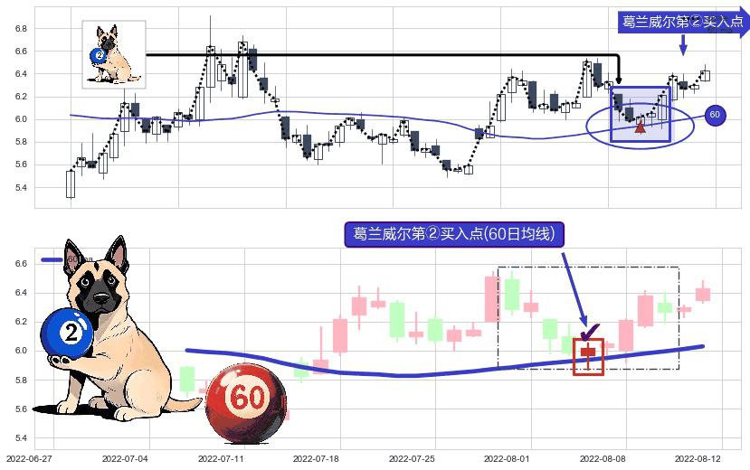 ⚀ 2022-08-04-日显现 葛兰威尔均线 60日均线 第②买入点 上升趋势的中继信号,后市看涨,买进信号