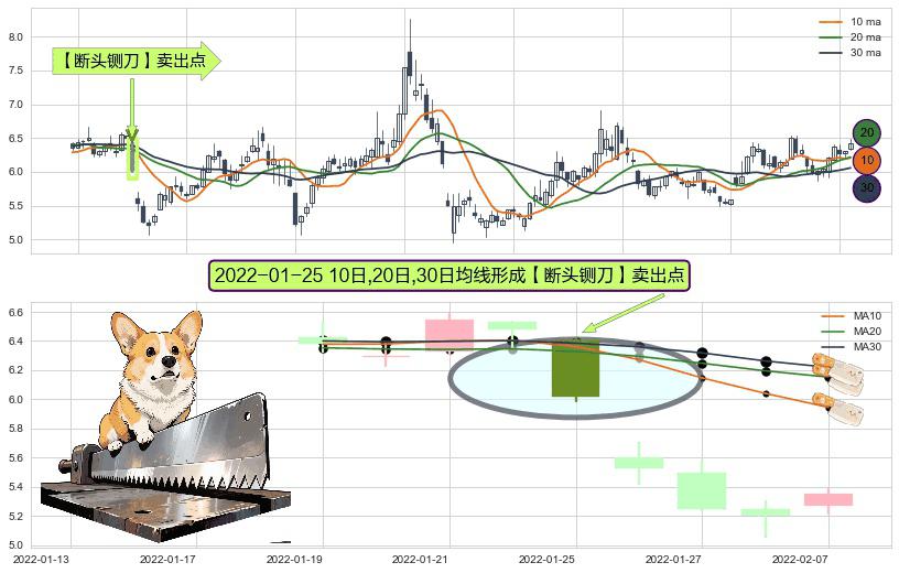 ⚀ 2022-01-25日显现 10日-20日-30日均线 【断头铡刀】卖出点 看空信号,后市看跌,卖出