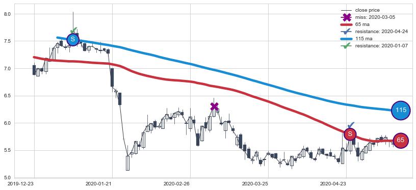 ⚁ MA60和MA90走势平行,且始终保持在短距离内,MA120始终在短中期均线上方,与短中期均线保持一定的距离,微微下行