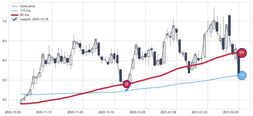 ⚄ 价格在均线获取支撑后再次向上反弹了【极短】距离, 第②买入点 支撑效果【等待验证】