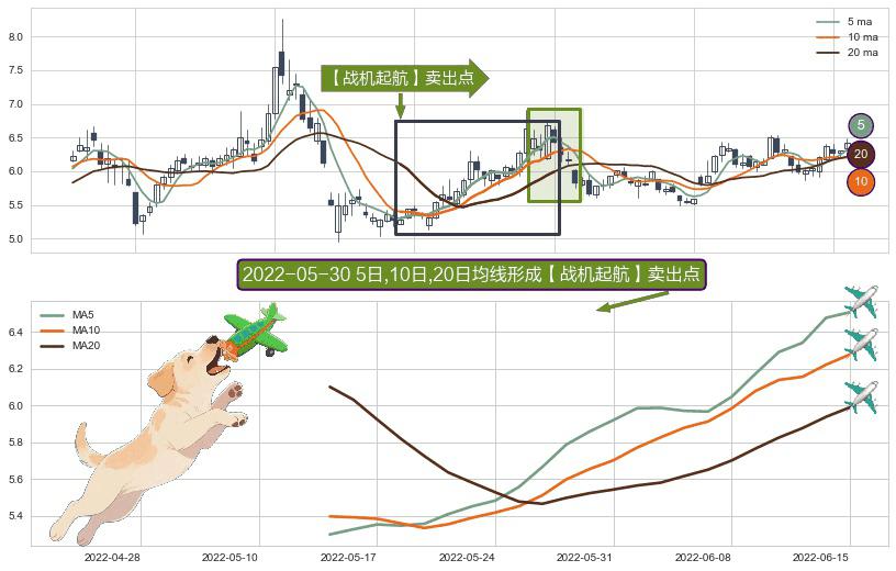 ⚀ 2022-05-13日-2022-06-15日显现 5日-10日-20日均线 【战机起航】卖出点 看空信号,后市看跌,卖出