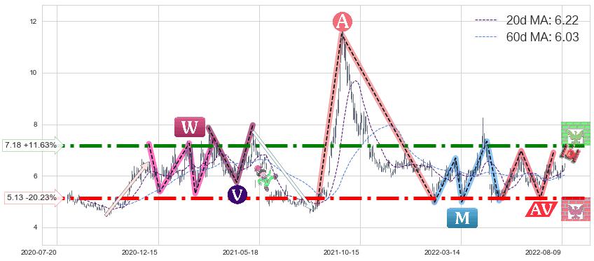 ♘ 阻力价格位7.18,可信任强度88.72%,距离最后交易2022-08-12形成的收盘价格6.43相差 +11.63%