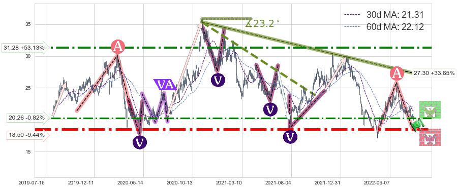 ♘ 阻力价格位20.26,可信任强度69.74%,距离最后交易2022-08-12形成的收盘价格20.43相差 -0.82%