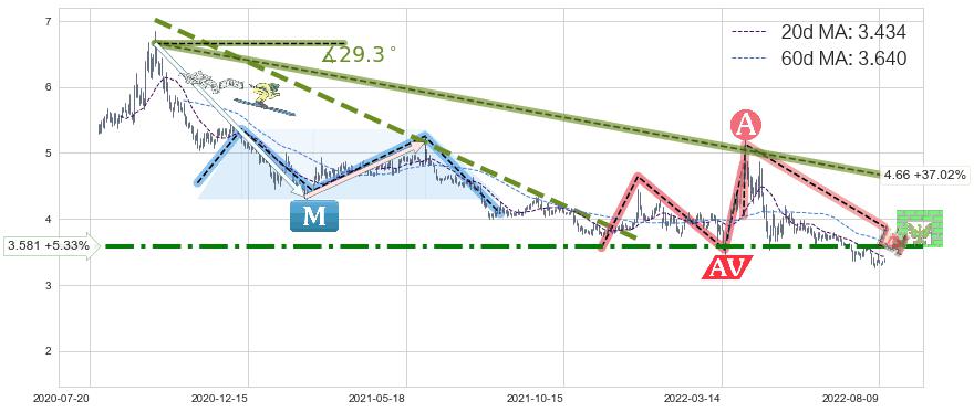 ➣ AI预测: 假定反转启动后, 第❸目标位置(2022-11-08, 3.300)