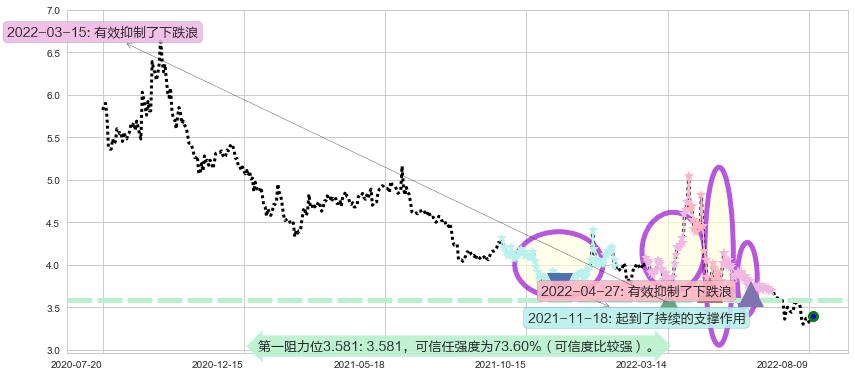 ♘ 阻力价格位3.581,可信任强度73.60%,距离最后交易2022-08-12形成的收盘价格3.400相差 +5.33%