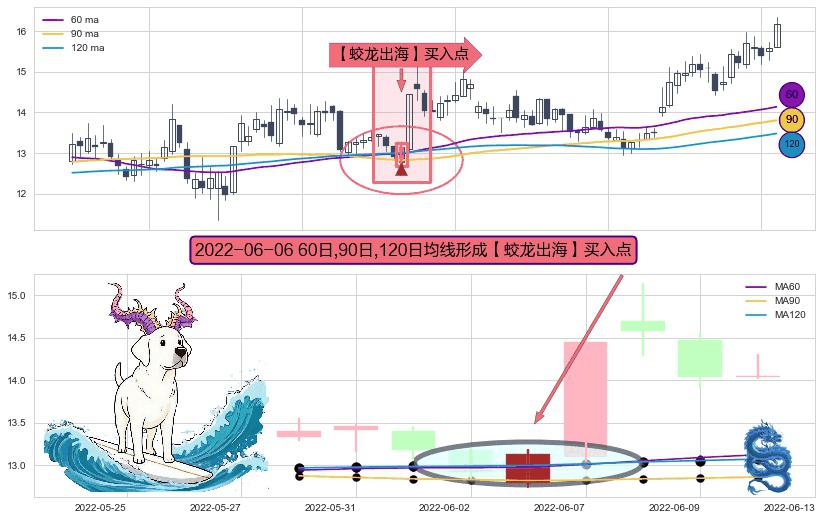 形态多维评估: ⚀ 2022-06-06日显现 60日-90日-120日均线 【蛟龙出海】买入点 看多信号,后市看涨,买入