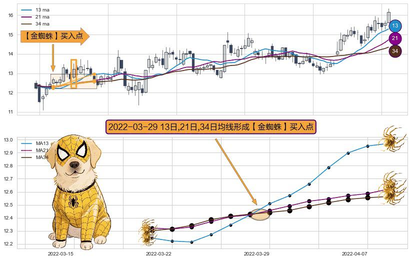 形态多维评估: ⚀ 2022-03-29日显现 13日-21日-34日均线 【金蜘蛛】买入点 看多信号,后市看涨,买入