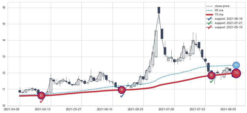 上涨趋势2021-04-26-2021-08-05,均线70确认关键支撑3处
