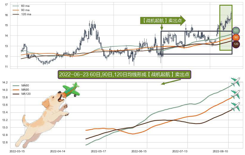 形态多维评估: ⚀ 2022-04-28日-2022-08-12日显现 60日-90日-120日均线 【战机起航】卖出点 看空信号,后市看跌,卖出