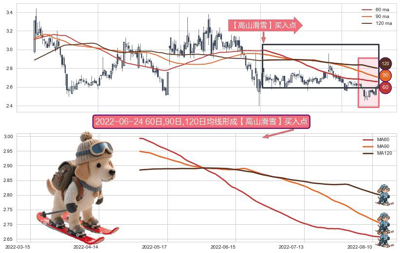 形态多维评估: ⚀ 2022-05-05日-2022-08-12日显现 60日-90日-120日均线 【高山滑雪】买入点 看多信号,后市看涨,买入