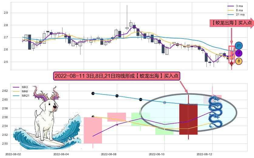 形态多维评估: ⚀ 2022-08-11日显现 3日-8日-21日均线 【蛟龙出海】买入点 看多信号,后市看涨,买入