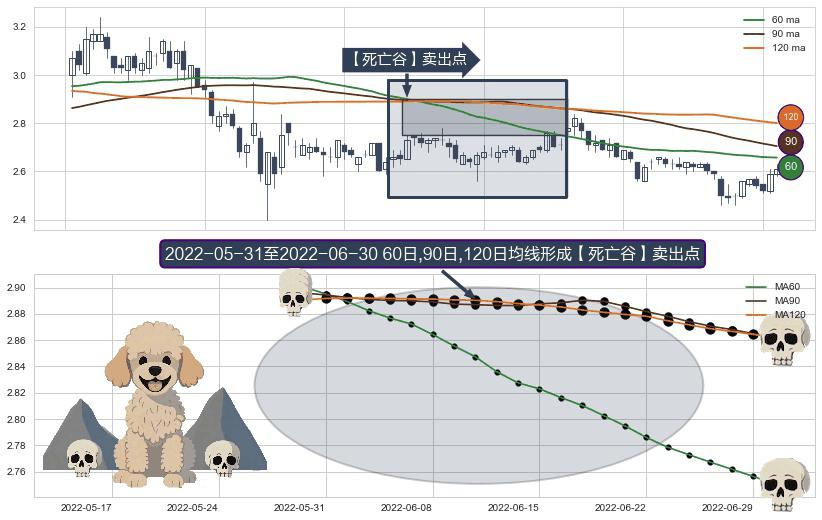形态多维评估: ⚀ 2022-06-01-日至2022-06-30-日显现 60日-90日-120日均线 【死亡谷】卖出点 看空信号,后市看跌,卖出