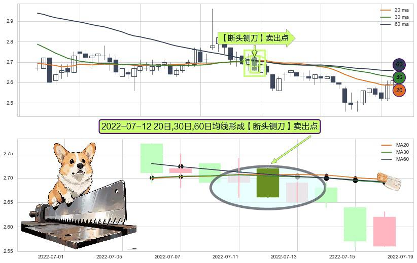 形态多维评估: ⚀ 2022-07-12日显现 20日-30日-60日均线 【断头铡刀】卖出点 看空信号,后市看跌,卖出