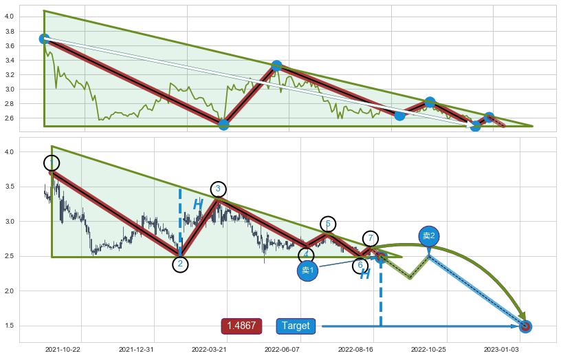 ➢ AI预测: 假定反转启动后, 第❷目标位置(2023-12-14, 3.044)