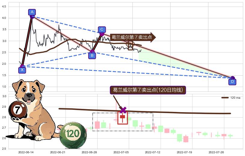 ➣ D点拟合预测价格1.3679,距离最后交易收盘价格2.610相差 -47.59%
