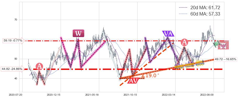 ♘ 支撑价格位59.19,可信任强度55.44%,距离最后交易2022-08-12形成的收盘价格59.65相差 -0.77%