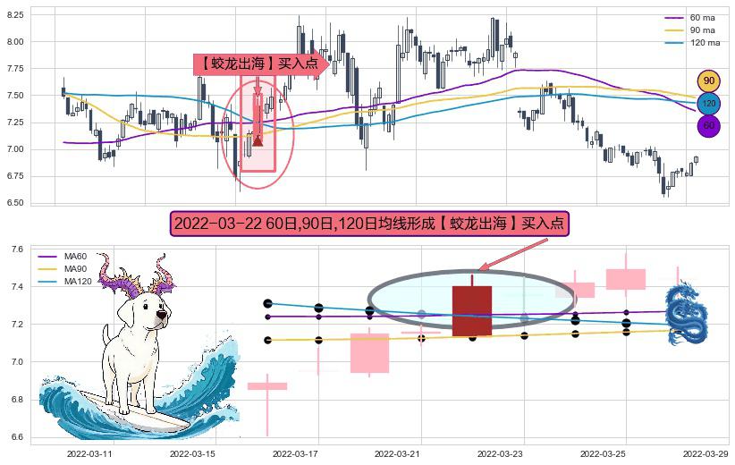 ⚀ 2022-03-22日显现 60日-90日-120日均线 【蛟龙出海】买入点 看多信号,后市看涨,买入