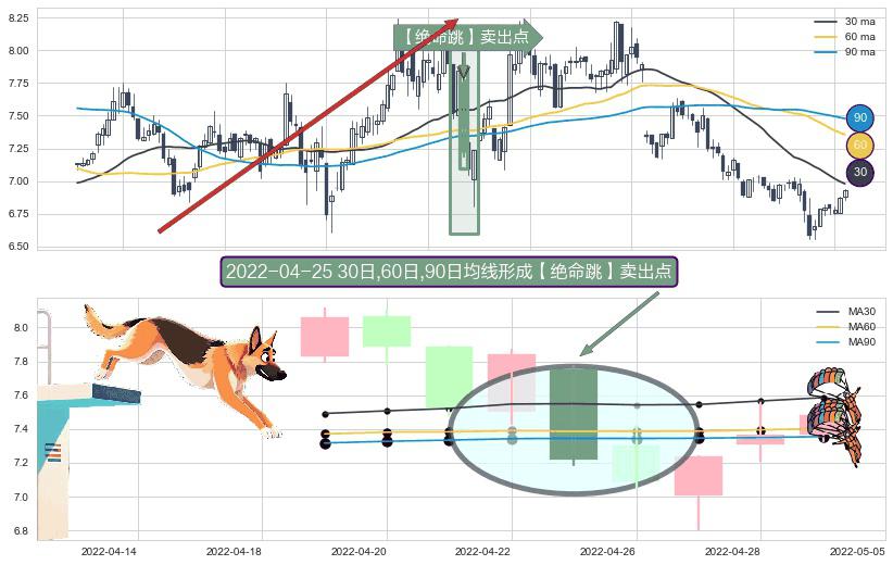⚀ 2022-04-25日显现 30日-60日-90日均线 【绝命跳】卖出点 看空信号,后市看跌,卖出