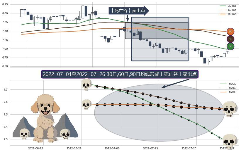 ⚀ 2022-07-04-日至2022-07-26-日显现 30日-60日-90日均线 【死亡谷】卖出点 看空信号,后市看跌,卖出