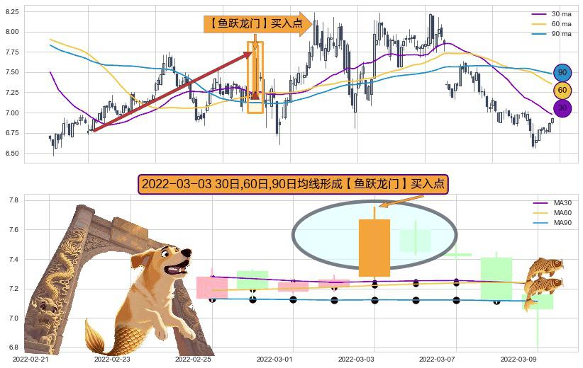 ⚀ 2022-03-03日显现 30日-60日-90日均线 【鱼跃龙门】买入点 看多信号,后市看涨,买入