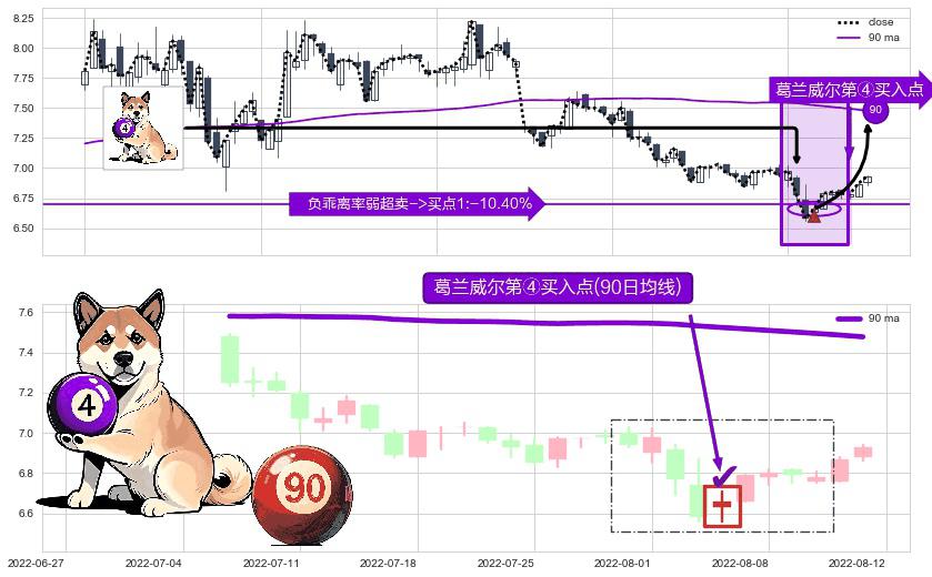 ⚀ 2022-08-04-日显现 葛兰威尔均线 90日均线 第④买入点 下降趋势均值回复的短线反弹信号,后市看涨,买进信号