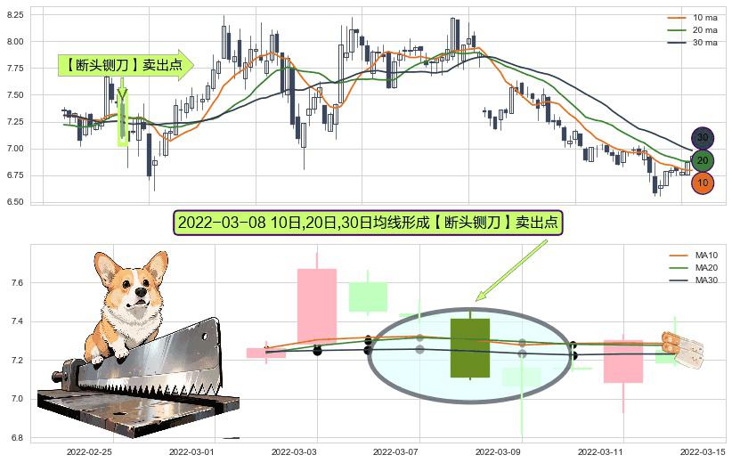 ⚀ 2022-03-08日显现 10日-20日-30日均线 【断头铡刀】卖出点 看空信号,后市看跌,卖出