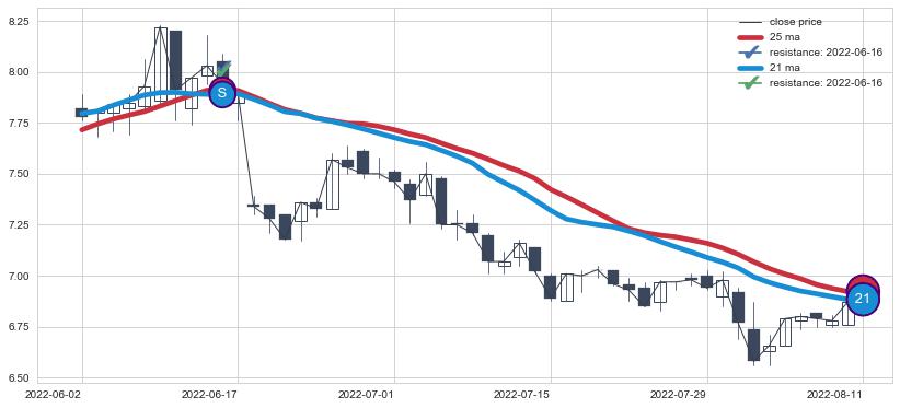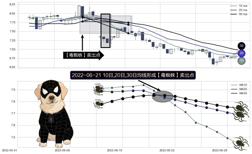 ⚀ 2022-06-21日显现 10日-20日-30日均线 【毒蜘蛛】卖出点 看空信号,后市看跌,卖出