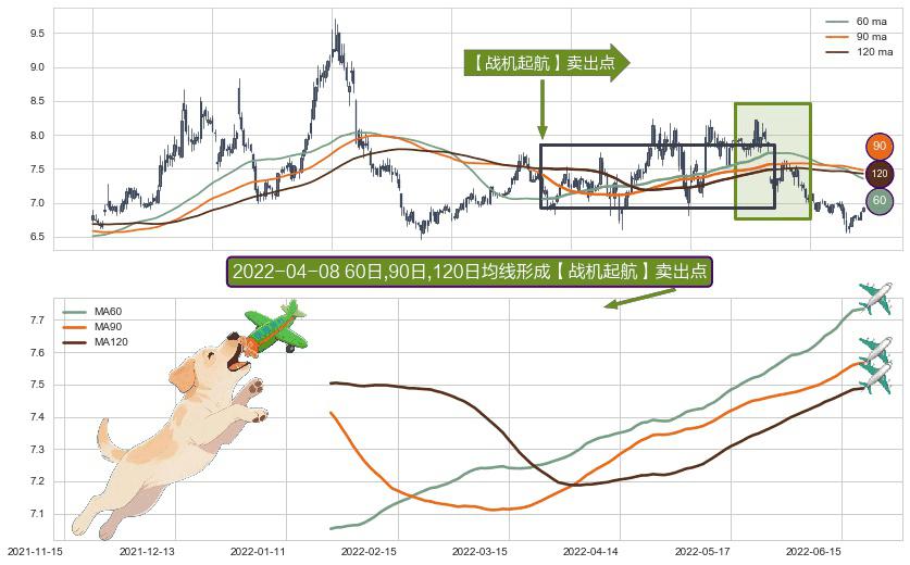 ⚀ 2022-01-21日-2022-06-21日显现 60日-90日-120日均线 【战机起航】卖出点 看空信号,后市看跌,卖出