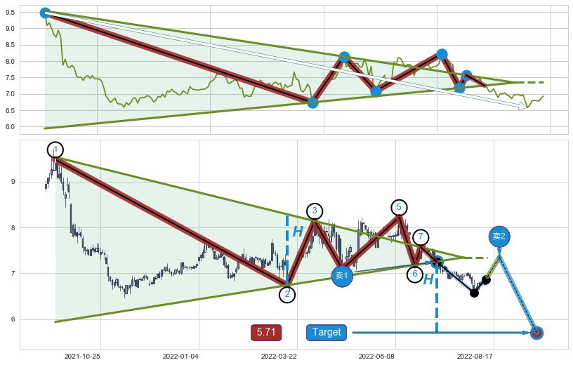 ➣ 【已确认突破】下降【对称】三角形整理 起点:2021-09-13,突破点:2022-07-07,形态共195交易日